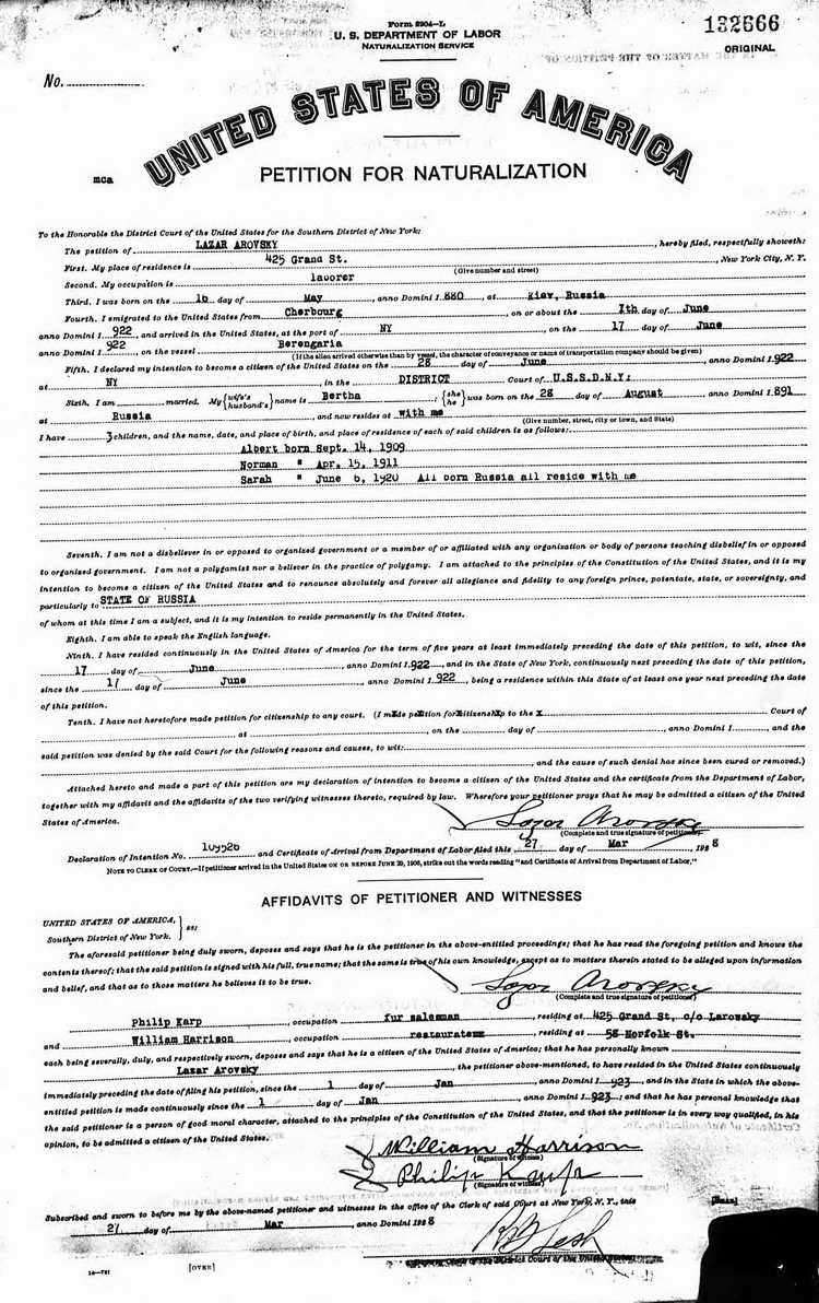 petitioned for naturalization as a U.S. citizen on 1 January 1923 and