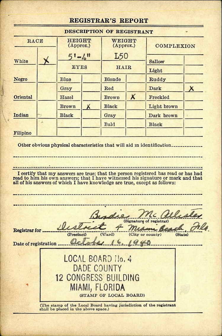 FL on 16 October 1940 and was inducted into the Army on 21 October 1942.