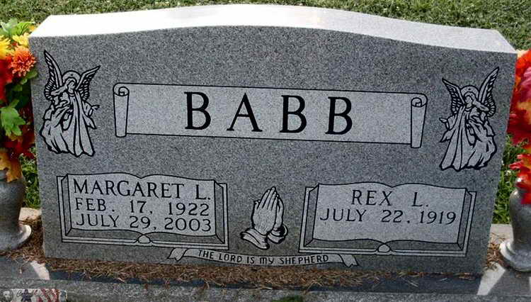 | Grave marker for Rex L. Babb in Riverview Cemetery,