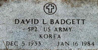 Grave marker for David L. Badgett in Oak Hill