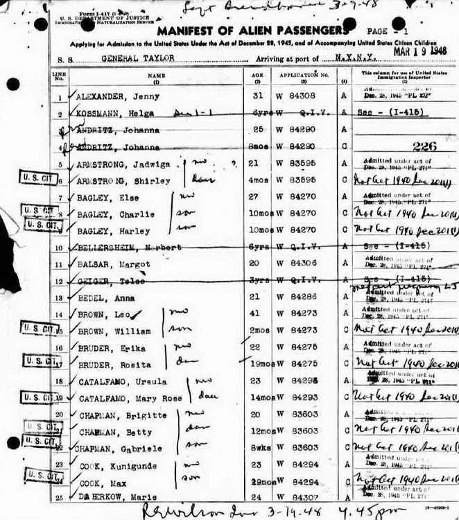 aboard the USAT General Taylor on 19 March 1948. With her was a daughter