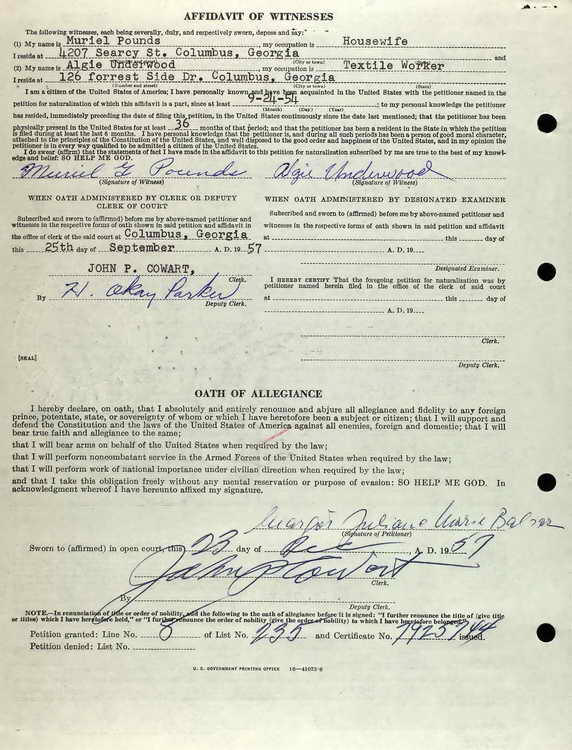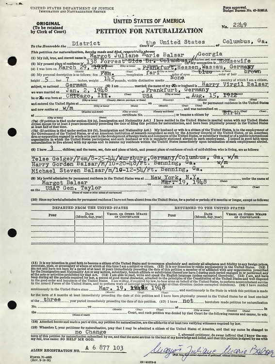 Margot became a naturalized citizen in the District Court, Columbus, GA