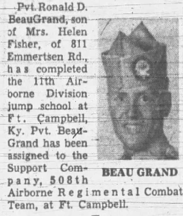 Pvt. Beaugrand has been assigned to the Support Company, 508th Airborne Regimental Combat Team,
