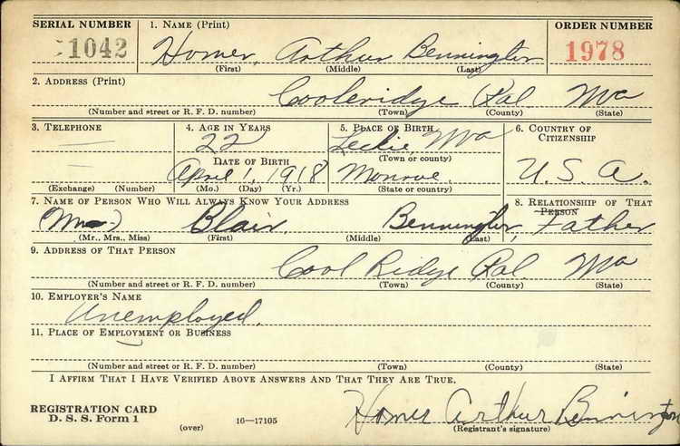 Bennington who registered for the draft ca. 1940 based on his age and