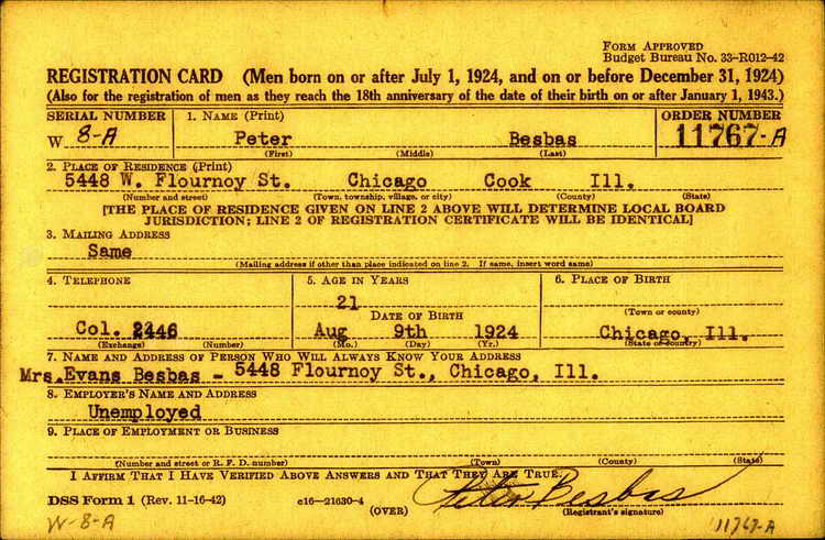 Peter enlisted in the Army at Fort Sheridan, IL on 15