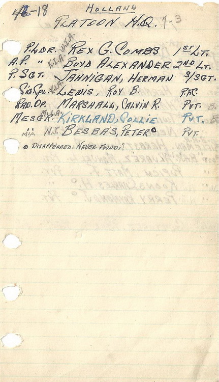 December 1944. Rex Combs marked him as "Disappeared, never found"