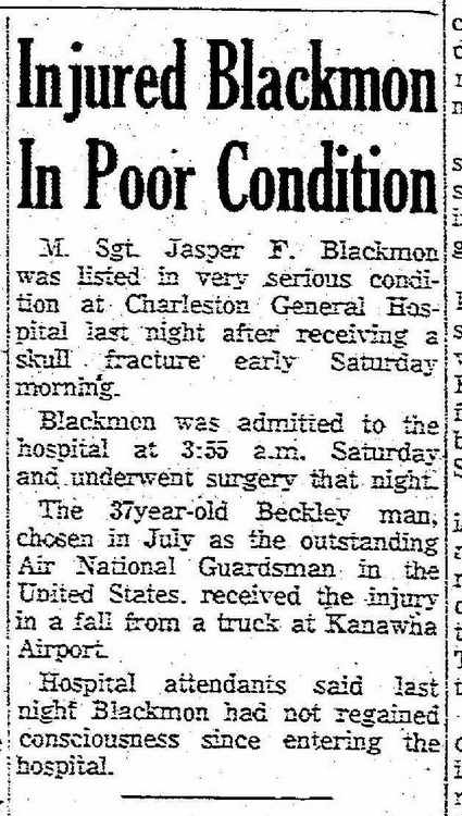 MSgt Jasper F. Blackmon was listed in very serious