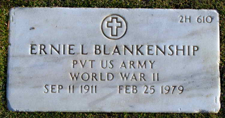 Grave marker for Ernie L. Blankenship in Plot 2H-610 of the