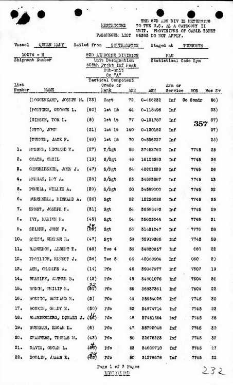 from the 11th Replacement Depot to Hq 3rd, 508 PIR on 10 August 1944.