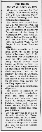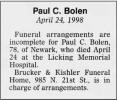 Funeral arrangement are incomplete for Paul C. Bolen, 78, of Newark, who