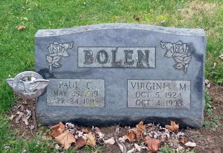 Bolen and spouse in Wilson Cemetery, Newark (Licking county), Ohio.