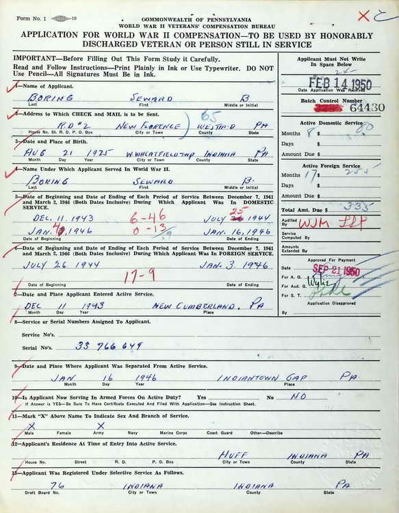 Army at Altoona, PA on 20 November 1943. He may have begun his