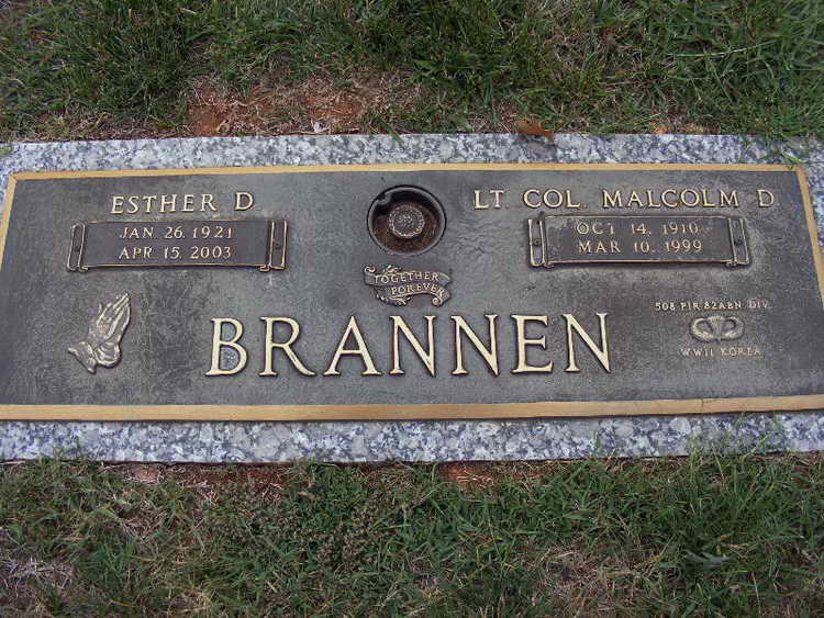 D. and Esther D. Brannen in Section K of the Woodlawn Memorial Park, Greenville