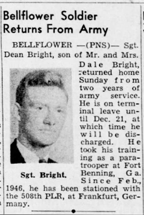 Sgt Dean Bright, son of Mr. and Mrs.. Dale Bright, returned home Sunday