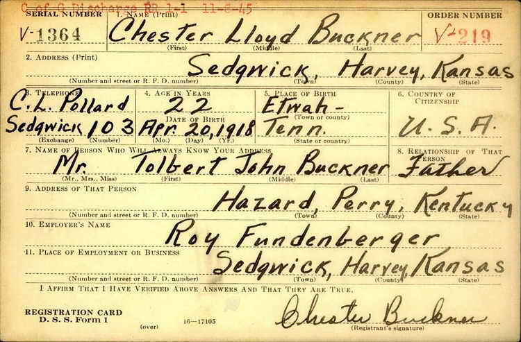 Grave marker for Chester L. Buckner in Marvins Chapel