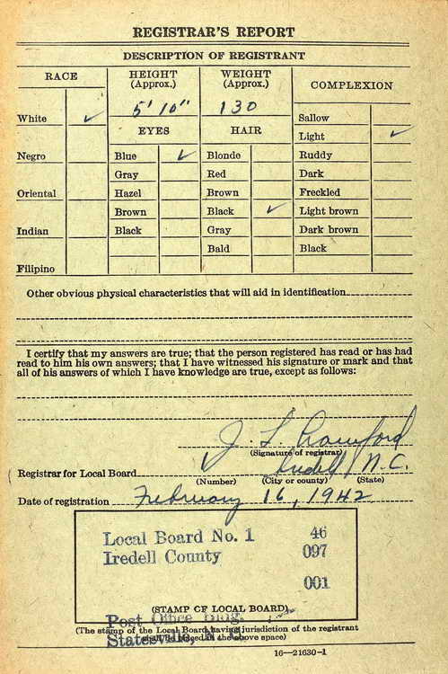16 February 1942 and was inducted into the Army at Fort Bragg, NC on 24