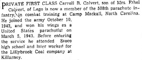 Carroll Calvert, paratrooper from Princewick [WV] and son of Mr. and