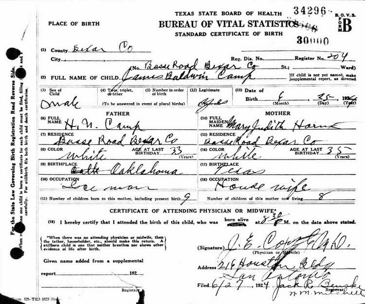 James B. Camp in Section 2S, Site 23 of Fort Sam Houston National