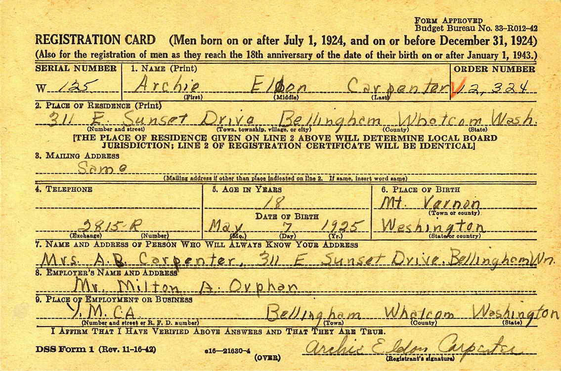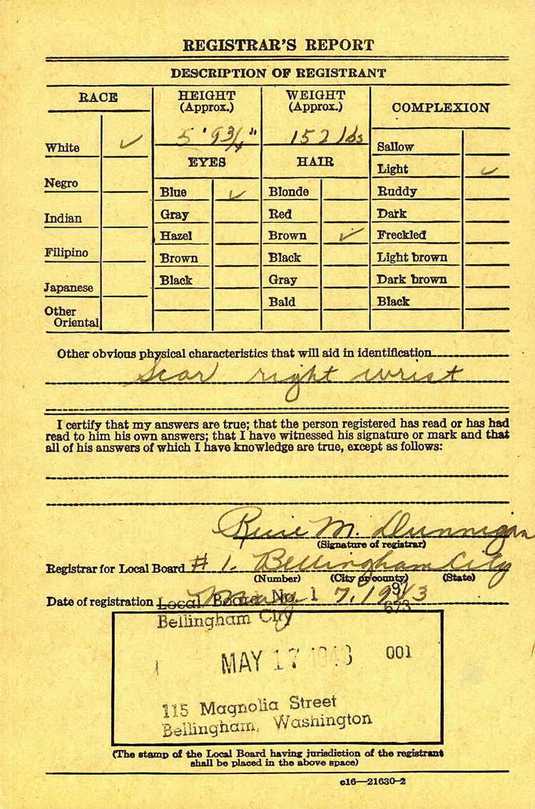 his preferred name, registered for the draft in Bellingham, WA on 17