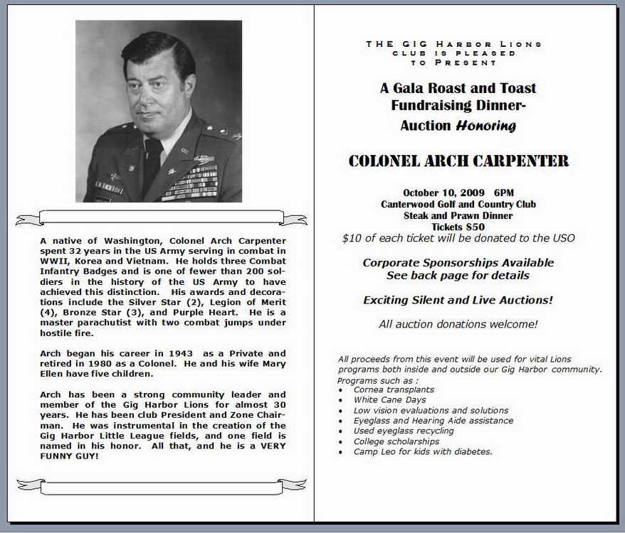 On 10 December 1949, Arch was "roasted' by the Gig Harbor lions Club