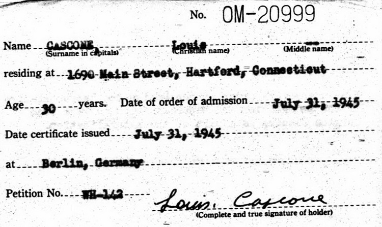 Louis became a U.S. Citizen on 31 July 1945 at the
