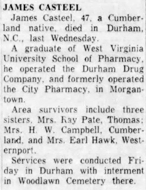 School of Pharmacy he operated the Durham Drug Company, and formerly operated