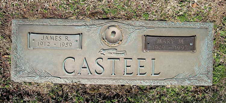 Grave marker for James R. and Mary M. Casteel in Damon Cemetery,