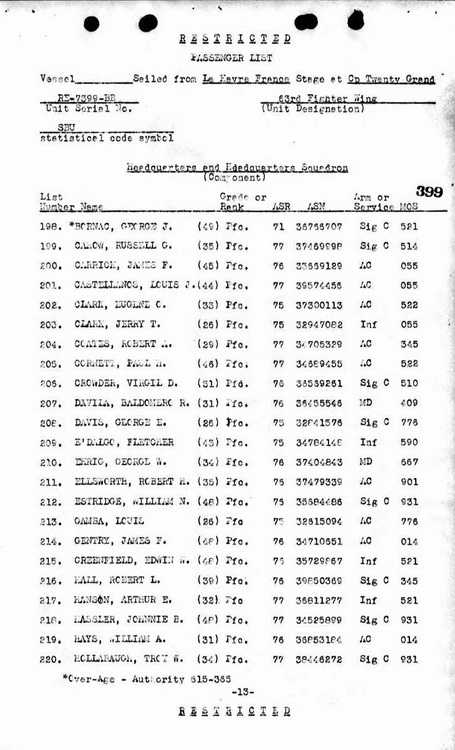 He was listed aboard a returning ship as a member of the 63rd