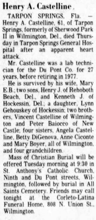 Mr. Castelline was a lab technician for the Du Pont Co. for 27