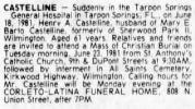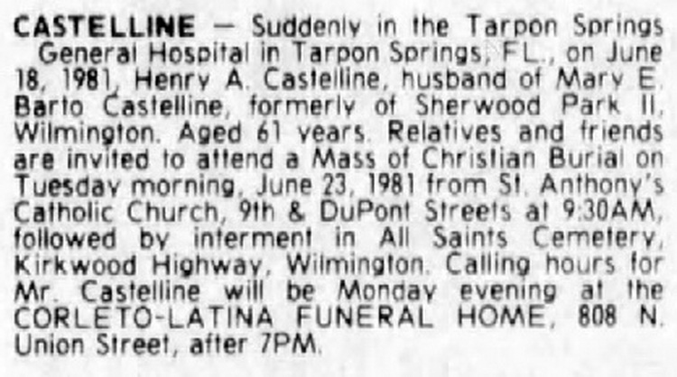 Kirkwood Highway, Wilmington. Calling hours for Mr. Castelline will
