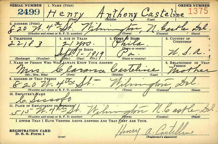 Amalfitano, 1900 West Third Street; Pfc. Henry A. Castelline, 815