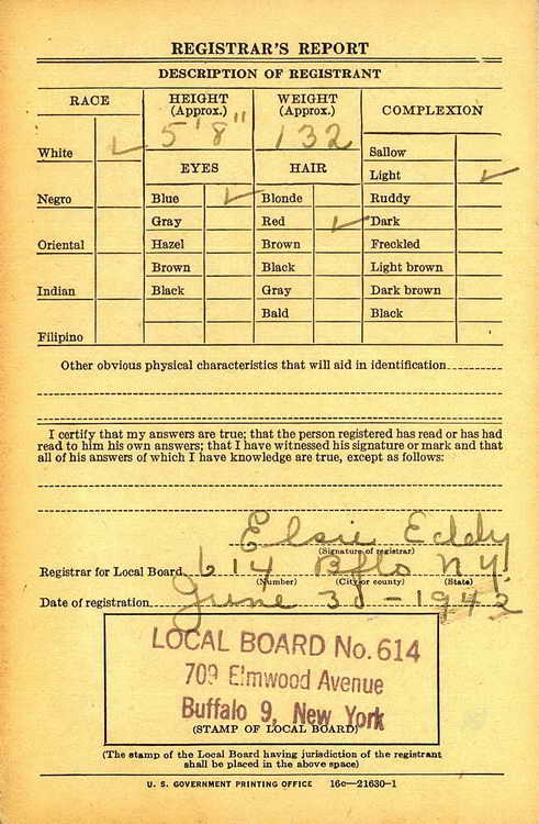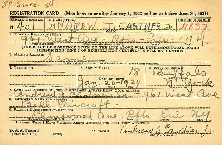 Andrew registered for the draft in Buffalo, NY on