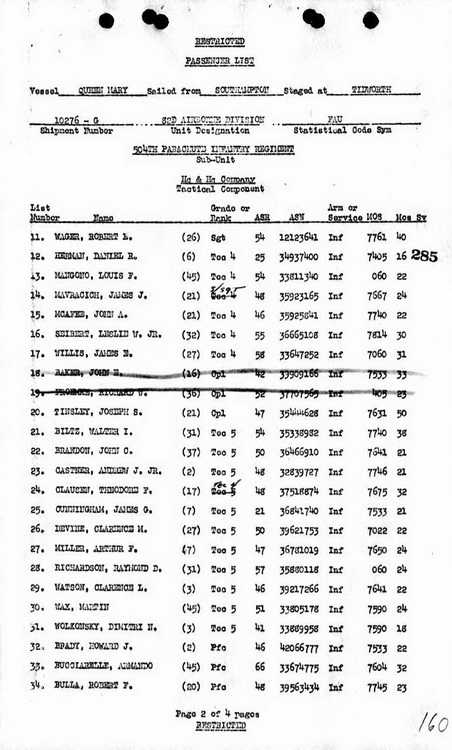 11th Replacement Depot to Company A, 508th PIR on 2 March 1945.