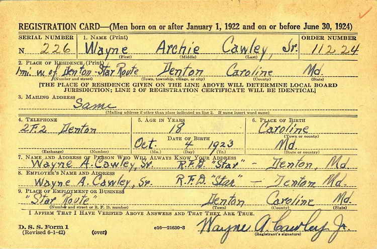 registered for the draft ca. 1941 at the requisite age of 18 in his