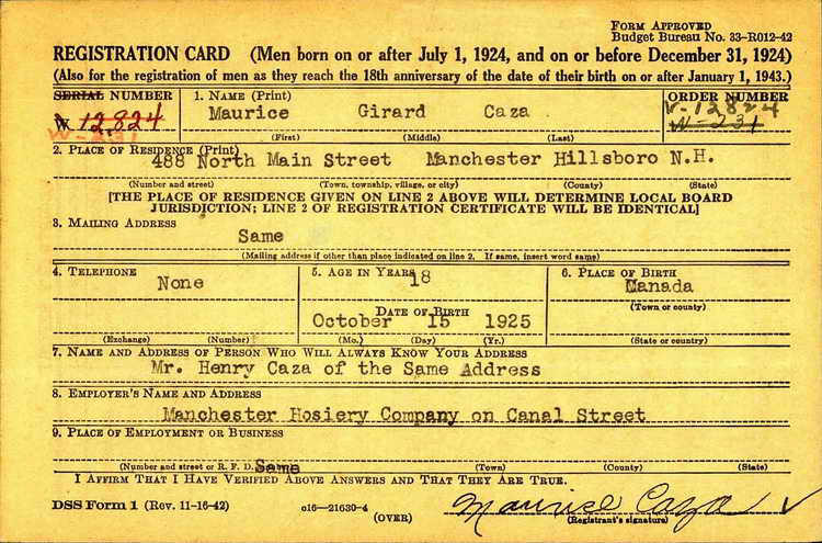 Pfc Caza re-enlisted in the Army on 25 October 1945 and served with