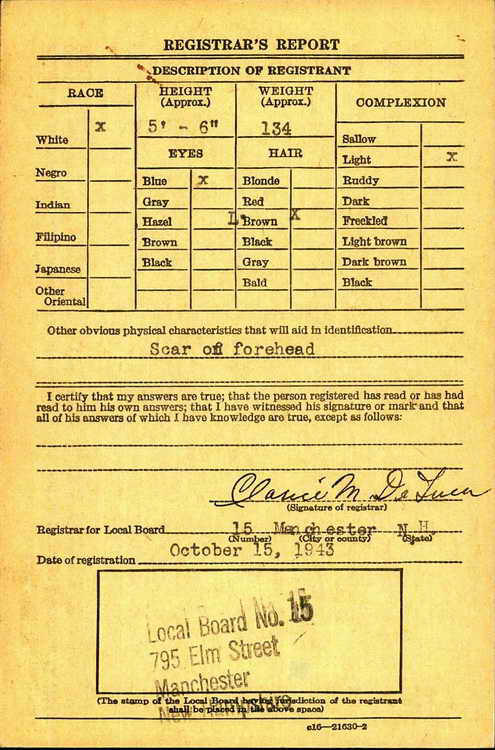 16 October 1943 and was inducted into the Army shortly thereafter..