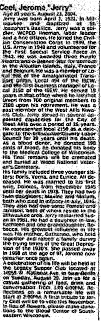 Jerry was born April 3, 1921, in Milwaukee and baptized at St.