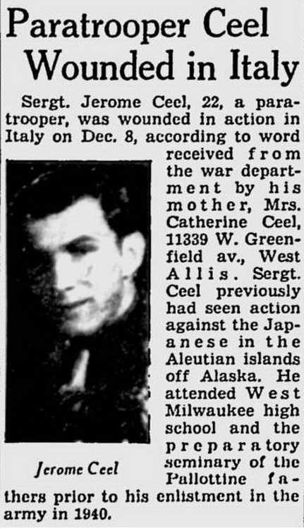 Ceel, 22, a paratrooper, was wounded in action in Italy on Dec, 8,