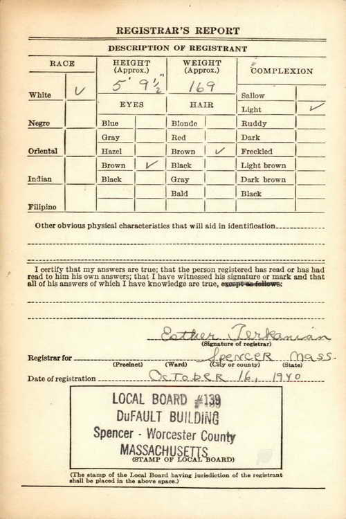 Raymond registered for the draft in Spencer, MA on