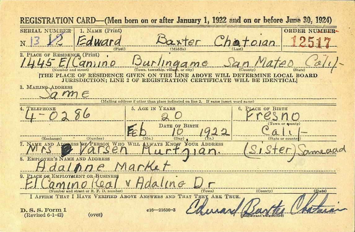 Edward registered for the draft in San Mateo, CA