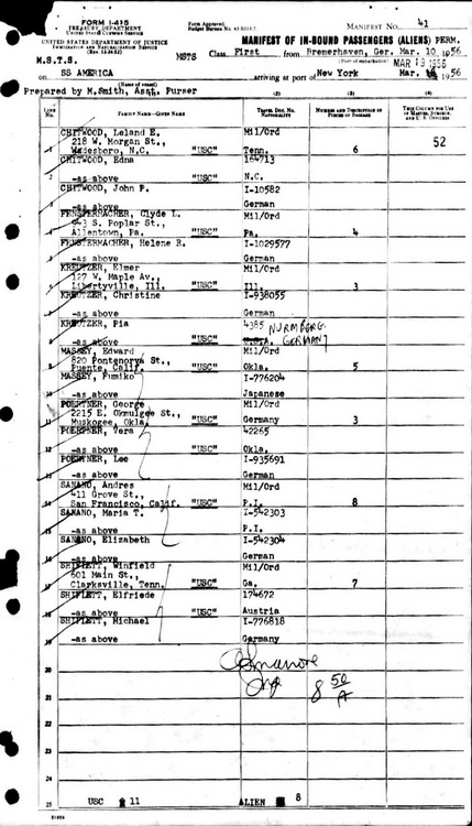 Leland, along wife wife and son, are listed aboard the SS America