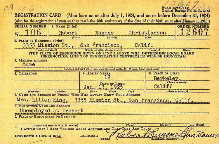 registered for the draft ca. 1943 and entered service on 9 February 1943