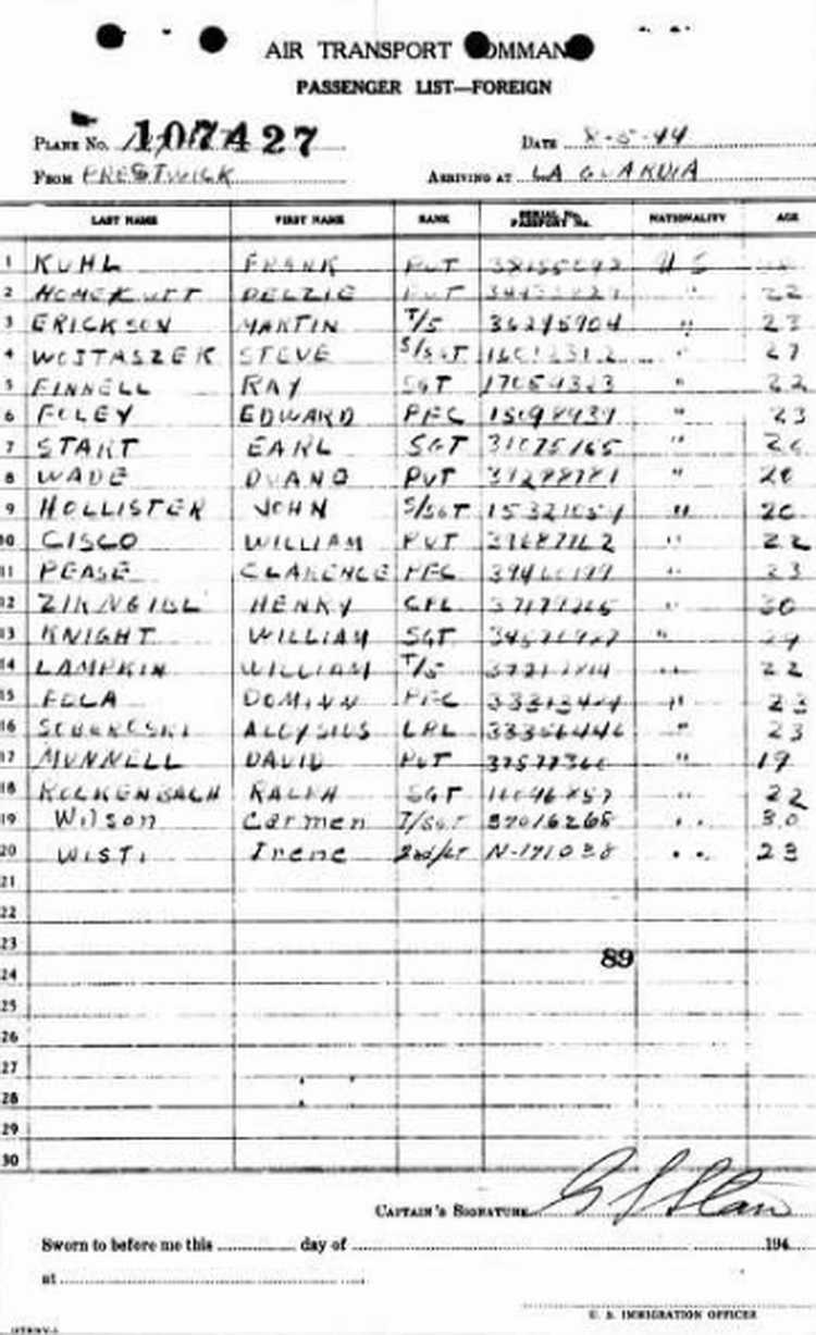 On 5 August 1944, Pvt Cisco arrived at LaGuardia