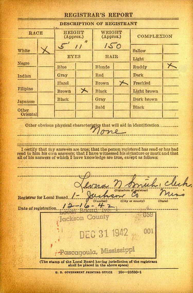 16 December 1942 and was inducted into the Army at Camp Shelby, MS on 14