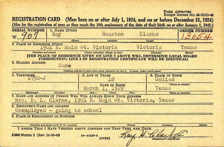 VICTORIA- Roy Clarke 82, of Victoria, passed away on Monday, February 13, 2012. He was born in Goliad to the late Ralph and Sophie Goldsum Clark on March 1, 1929.