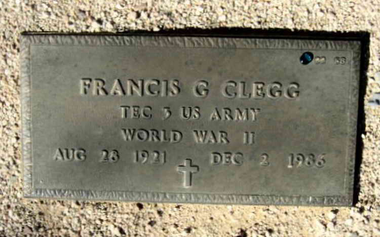 Grave marker for Francis G. Clegg in Section 22 Site 56 of