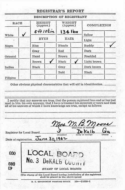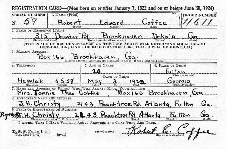 Robert registered for the draft in DeKalb county,