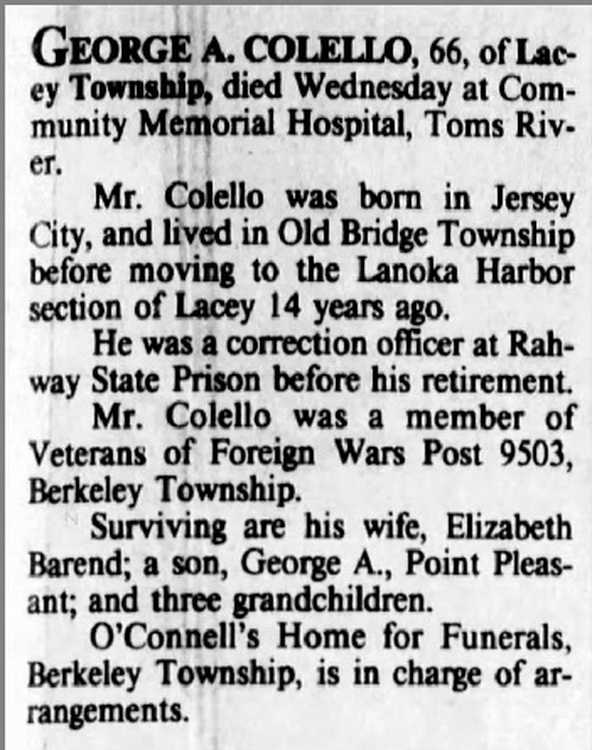 Mr Colello was born in Jersey City, and lived in Old Bridge Township