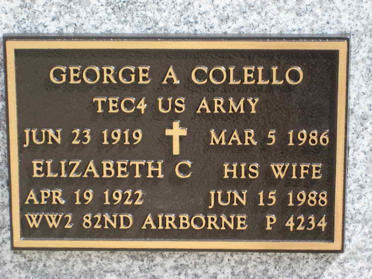 George A. Colello and spouse, Plot P, Grave 4234 in Brigadier