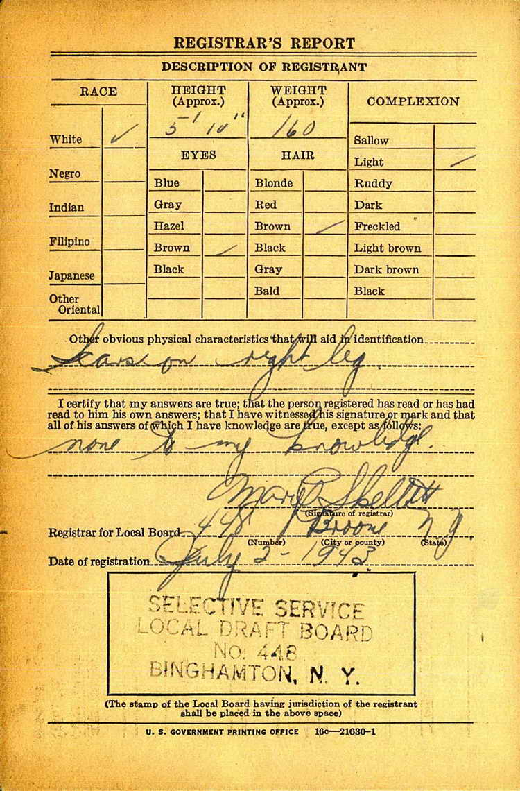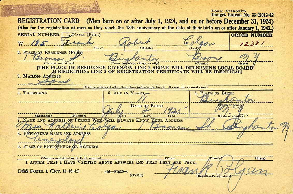 Frank registered for the draft in Binghamton,